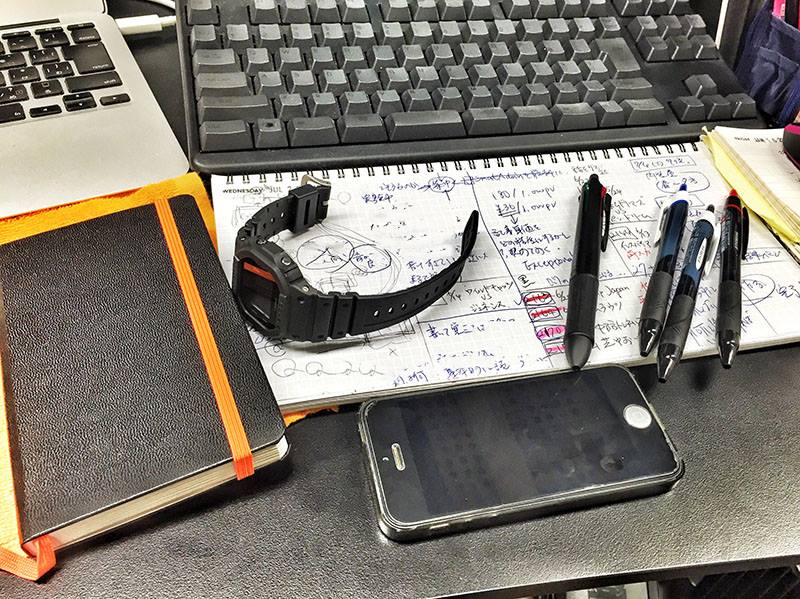 デスクで仕事をするときや家で過ごすときなど、手元には常にノートを開いて置いてある。いつでも何でも書けるようになっている。そして仕事をする際にも、常に「今何をしているか」を書いている。なぜか。それは『バ